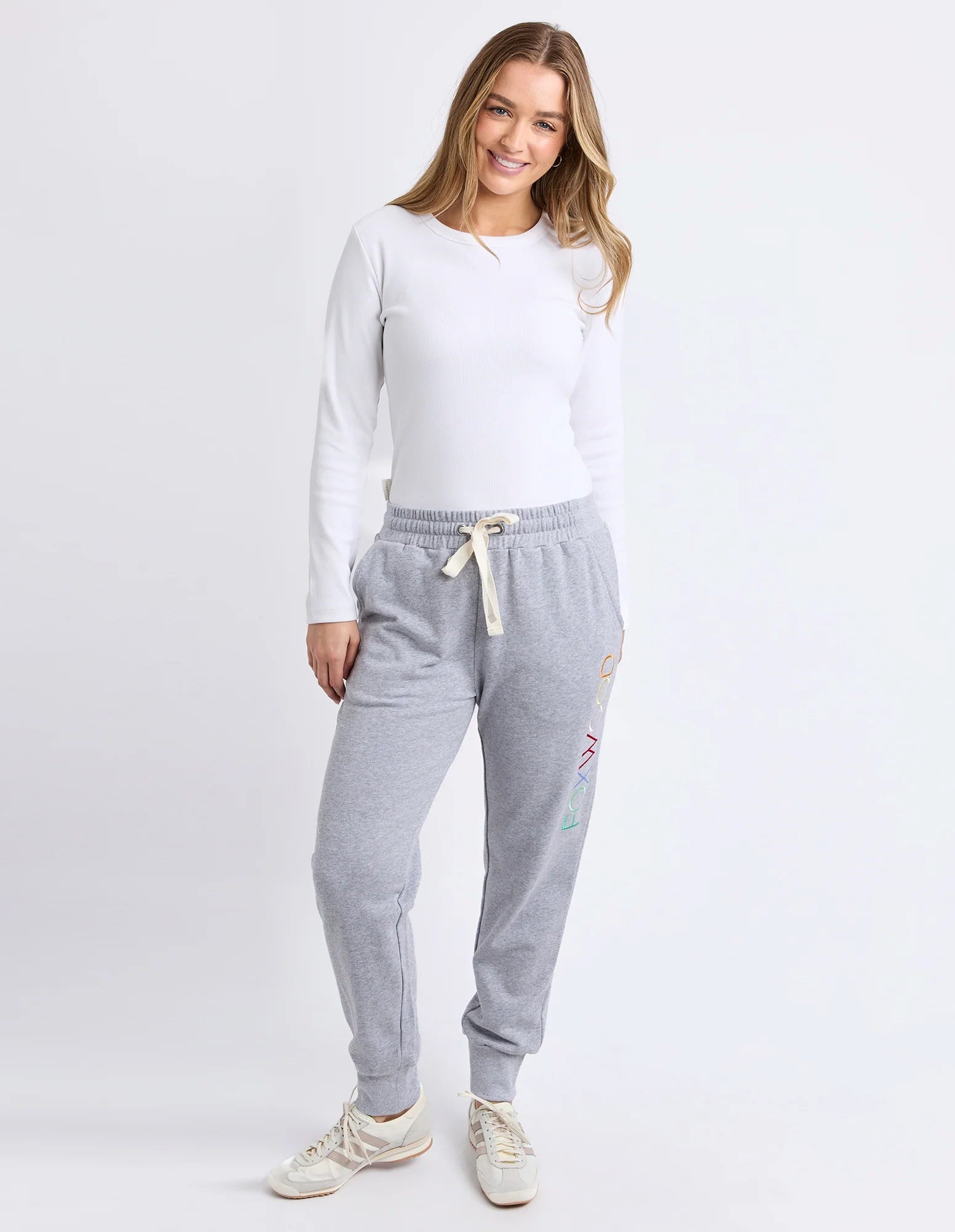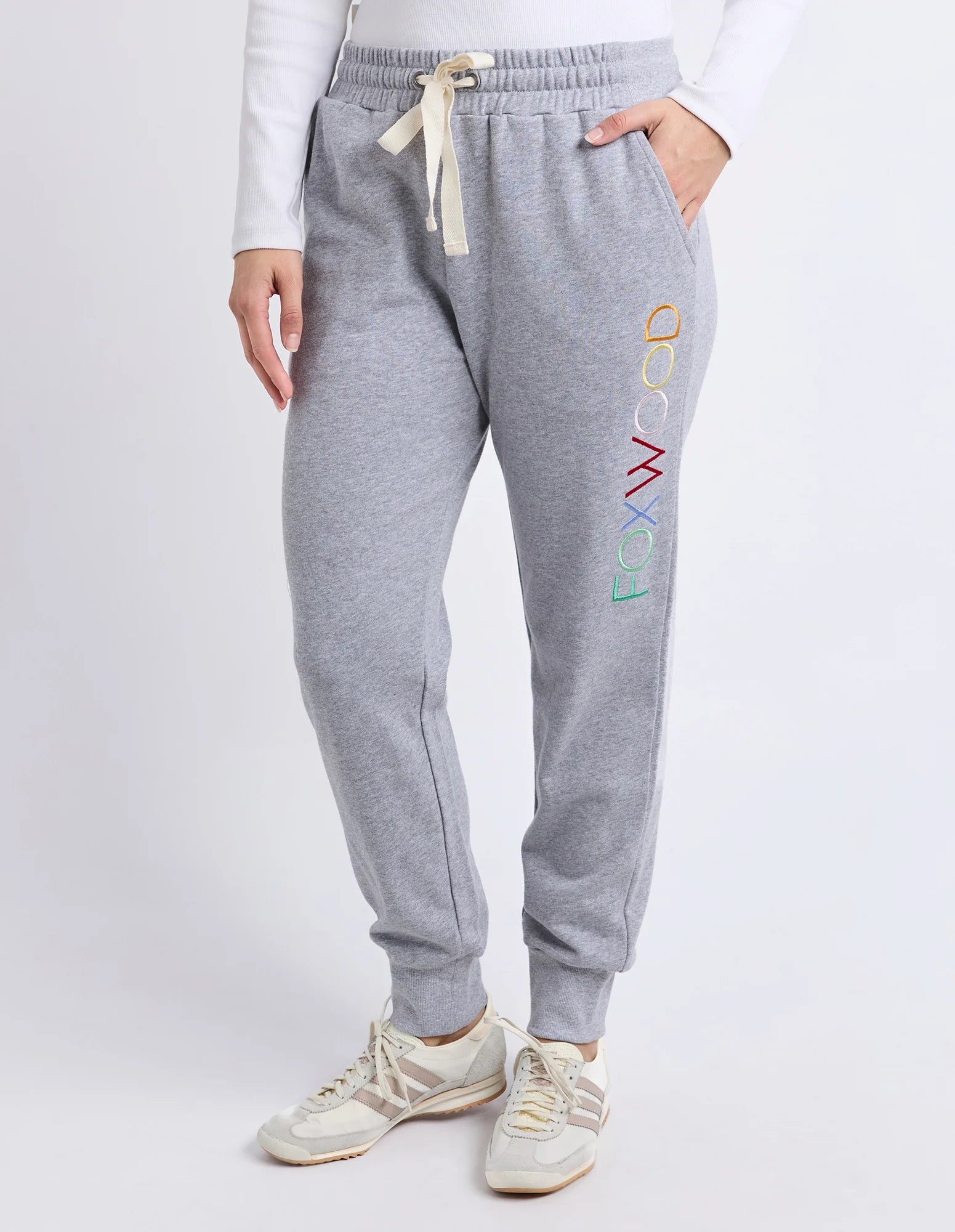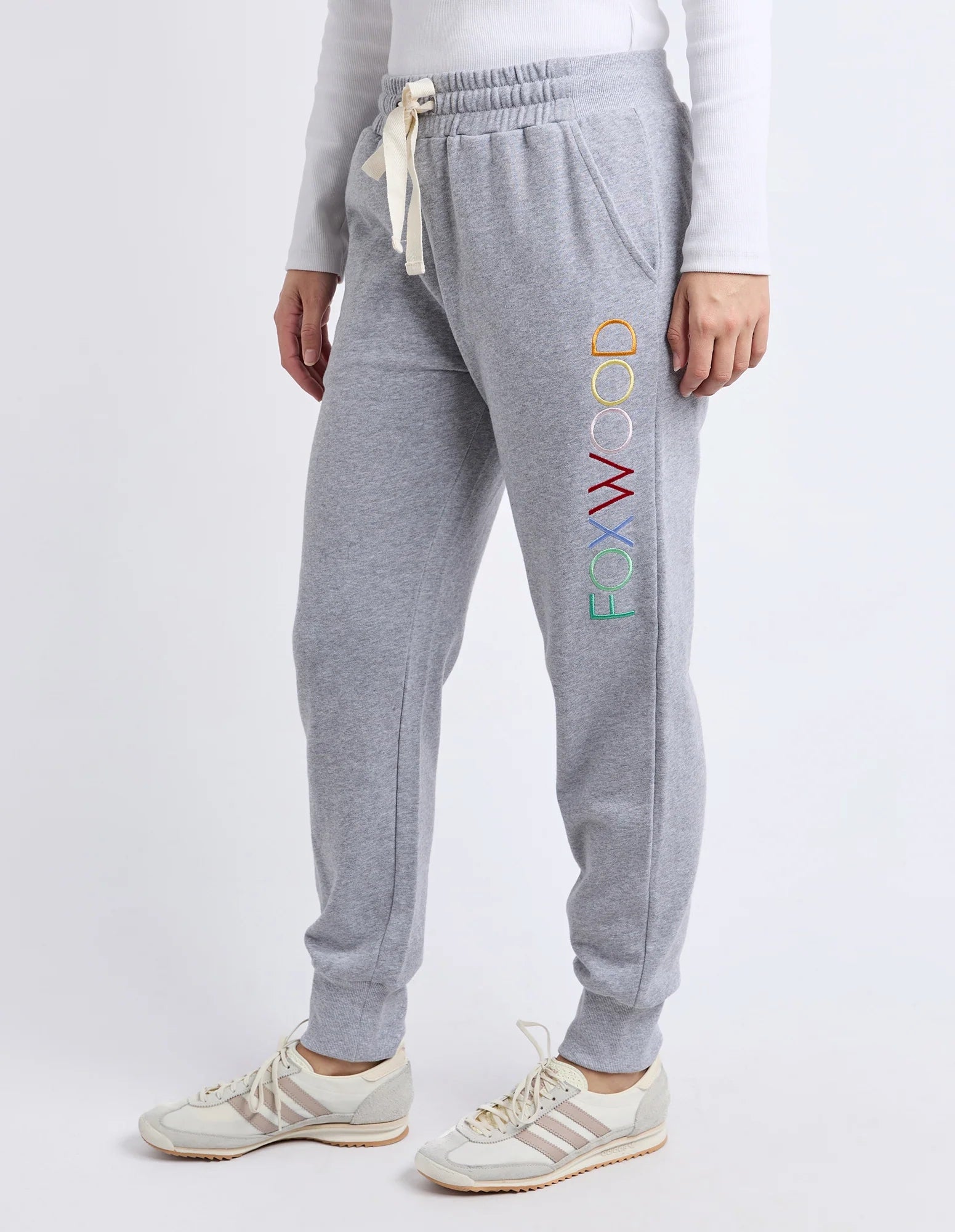 Finished with functional side pockets and bold multicoloured FOXWOOD embroidery down the leg, these cotton trackpants bring a fun pop of personality to your off-duty style. Perfect for lounging, travel or everyday athleisure, they’re a must-have for anyone who loves comfortable yet stylish women’s loungewear.