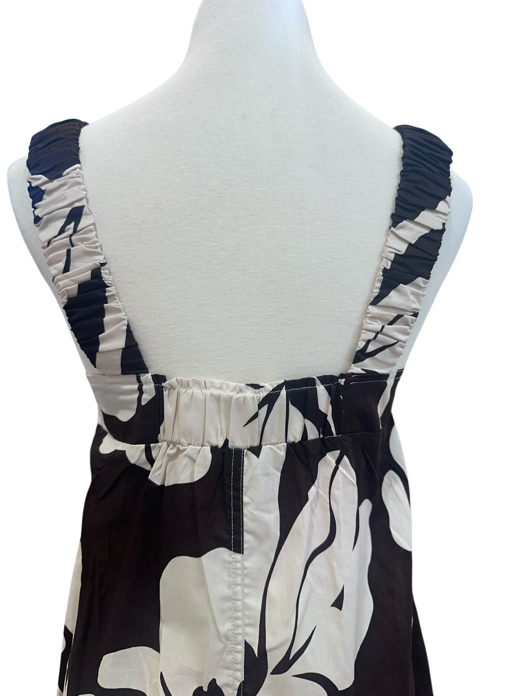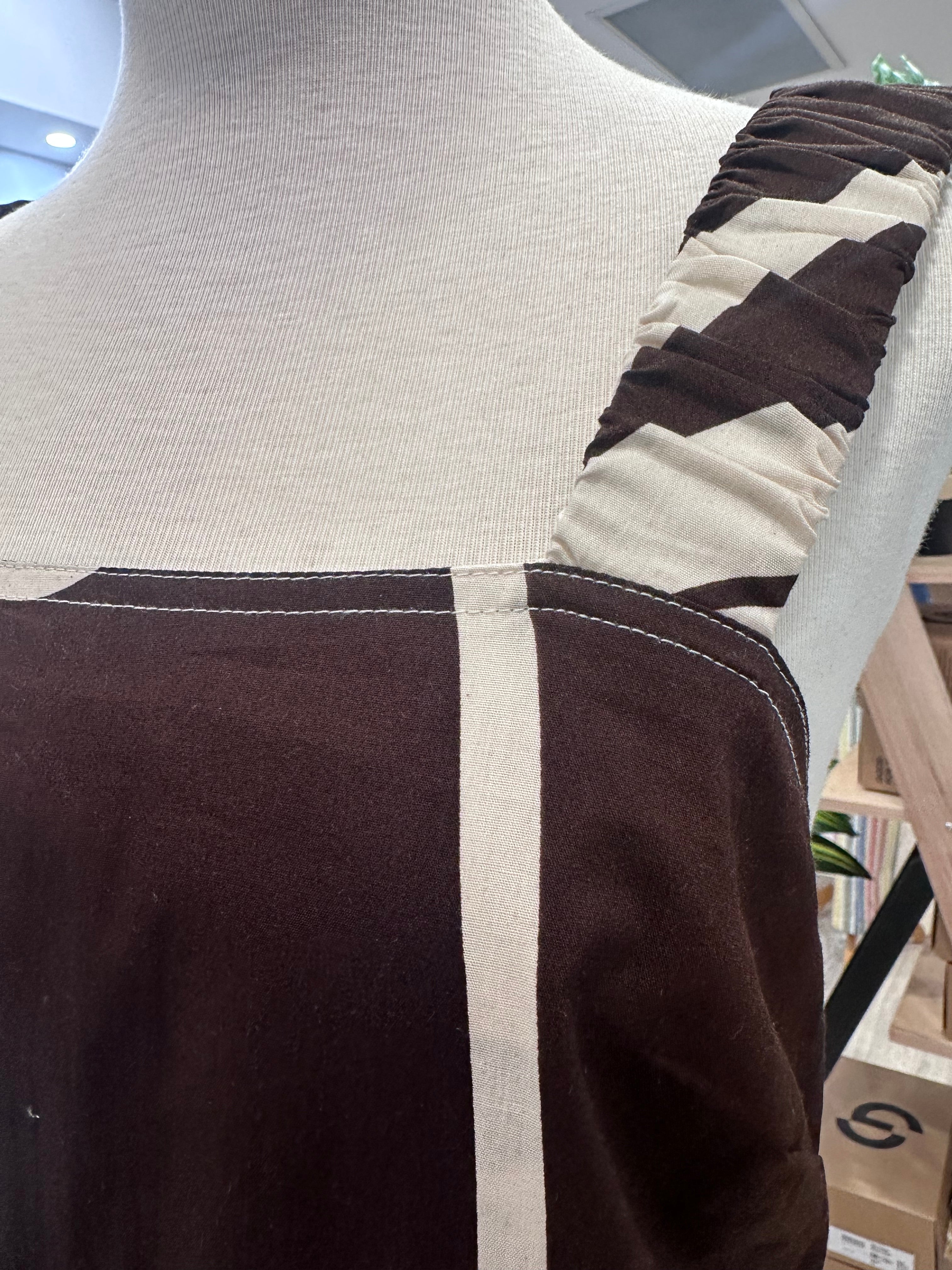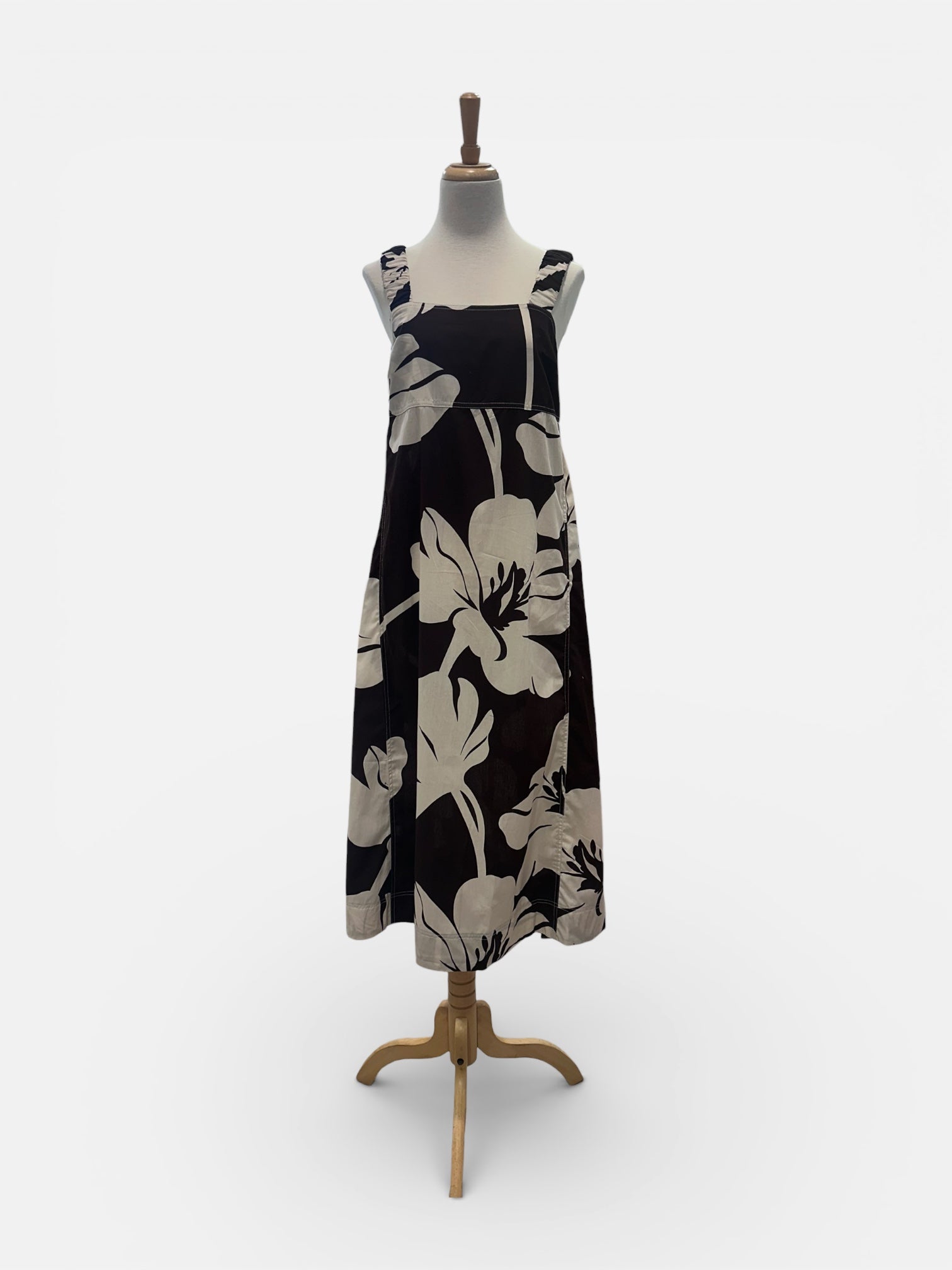 Slip into effortless elegance with the Choc Bloom Maxi. This lightweight 100% cotton dress features a flattering square neckline, ruched straps for comfort, and an elastic back for flexible movement. White contrast stitching brings a modern, playful edge to the clean silhouette. Whether you're heading out for the day or transitioning into evening, this versatile piece works hard so you don't have to. Grab yours today and discover your new go-to dress.
