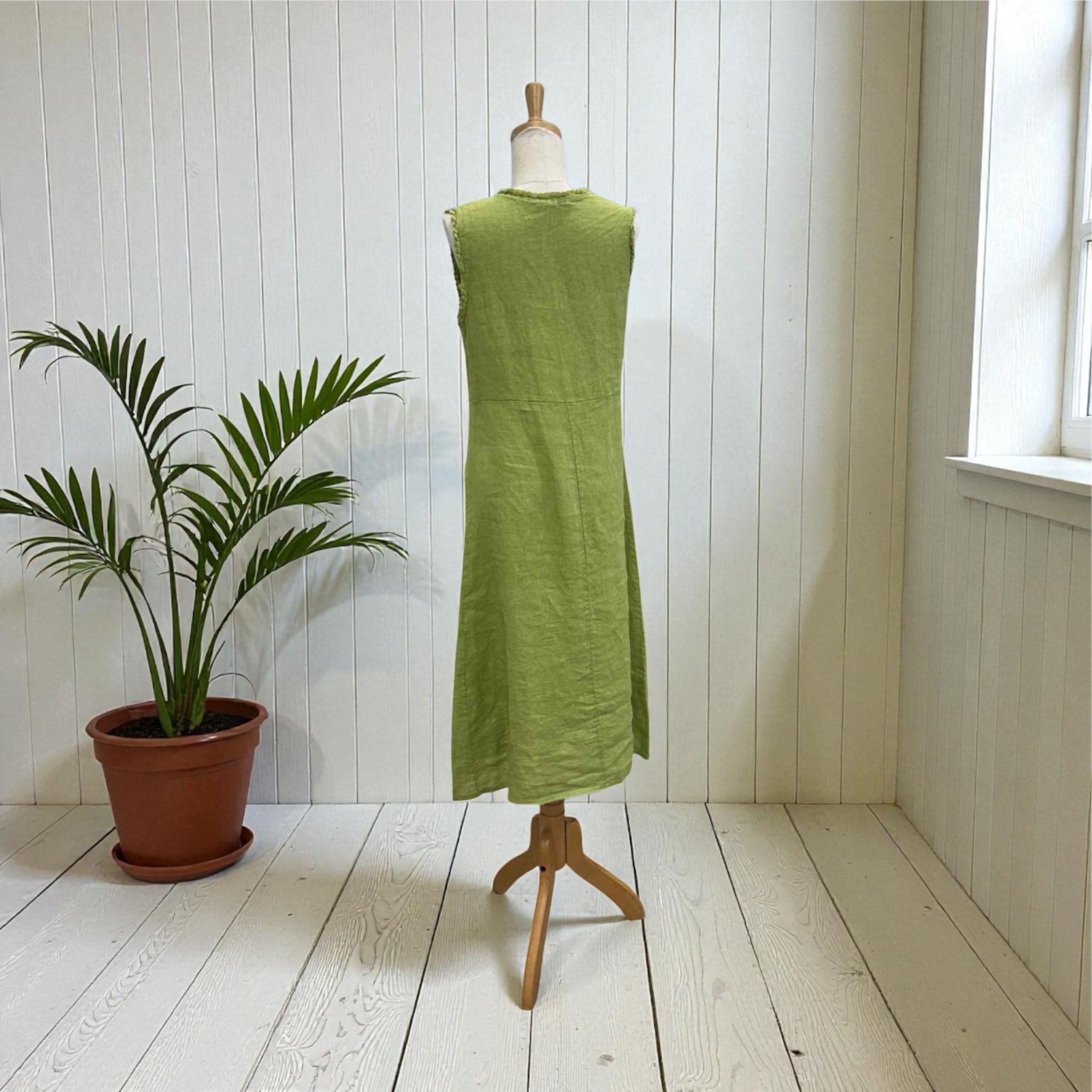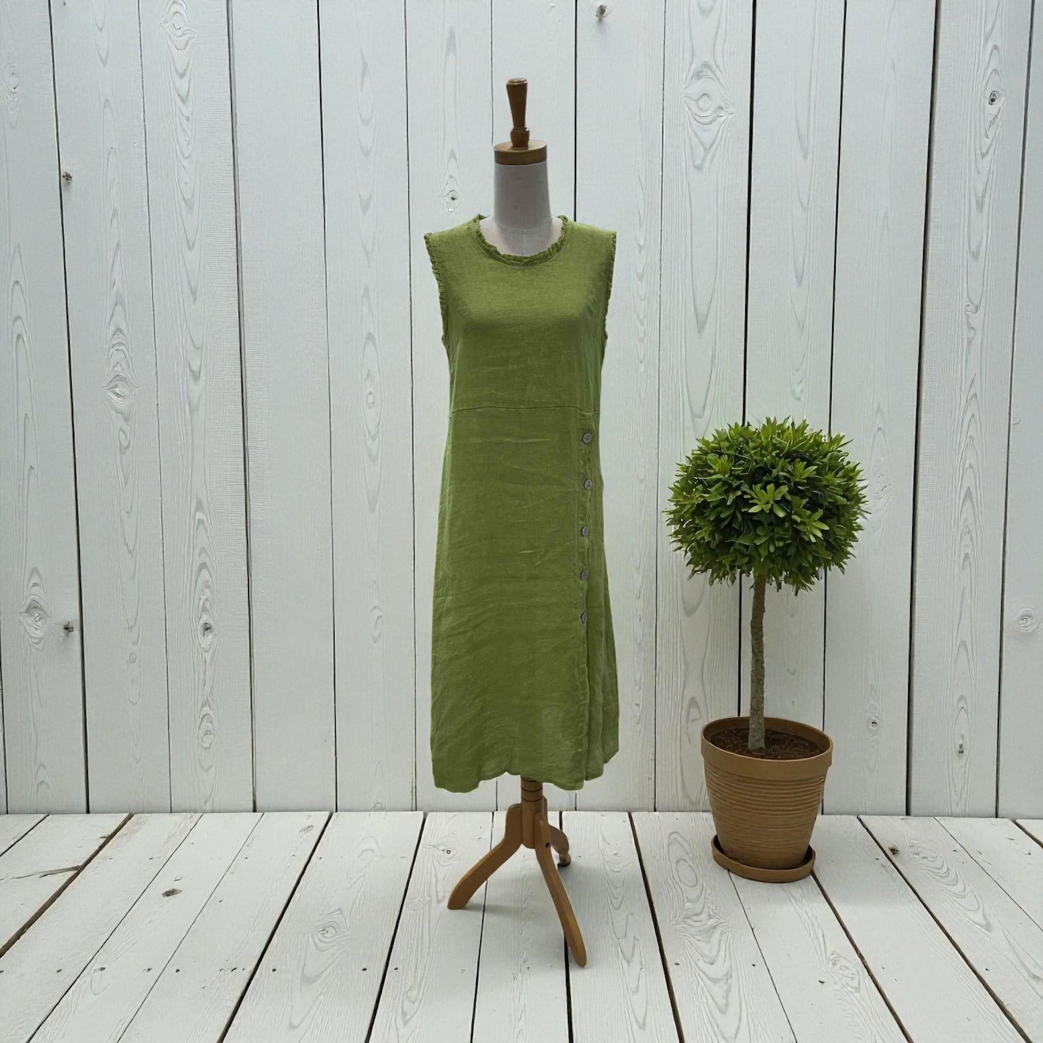 The Silvie Italian Linen Dress is the epitome of effortless summer elegance. Crafted in Italy from high-quality linen, this sleeveless midi dress offers both comfort and sophistication. It falls gently from the seam under the bust for a flattering, easy fit, with no pockets so it drapes beautifully on the body.