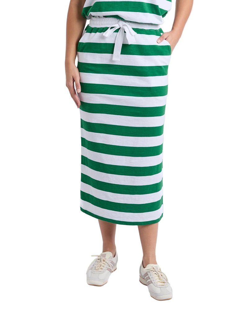 Meet the Tallow Skirt – your go-to piece for effortless, everyday style. Crafted from 100% cotton with striking yarn-dyed stripes, this midi skirt features a comfortable elastic waist and adjustable drawcord for the perfect fit. Whether you're pairing it with a simple tee or layering with a tank, you'll love how easy it is to look put-together. Available in sizes 8–16, it's the relaxed essential your wardrobe has been waiting for. Grab yours today and make laid-back chic your signature look.