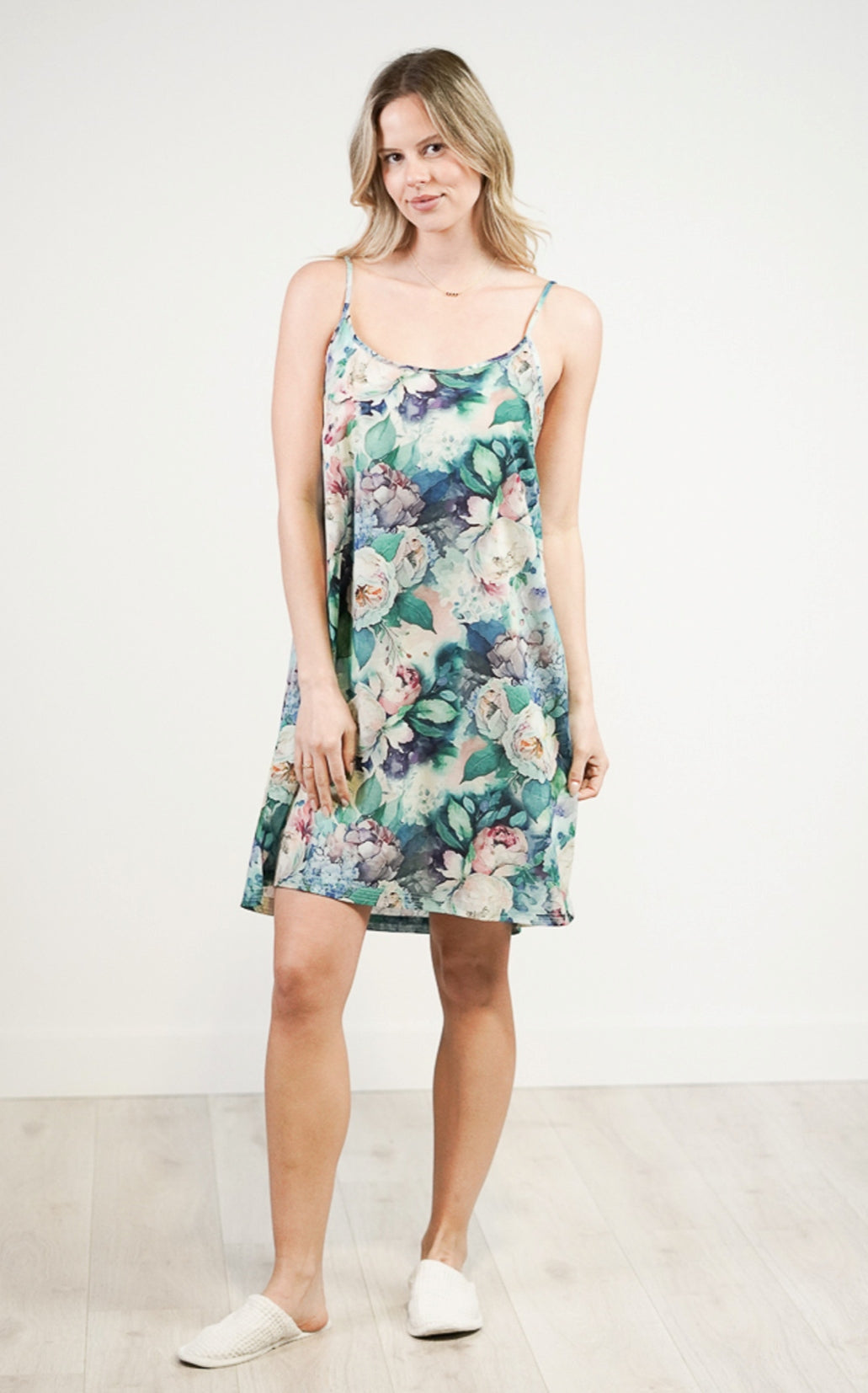 Crafted from 100% lightweight cotton voile, the Botanical Bloom Slip is soft, breathable, and made for comfort. Its classic slip silhouette features slender straps and a gentle drape that falls just above the knee—perfect for relaxed evenings or lazy Sunday mornings.