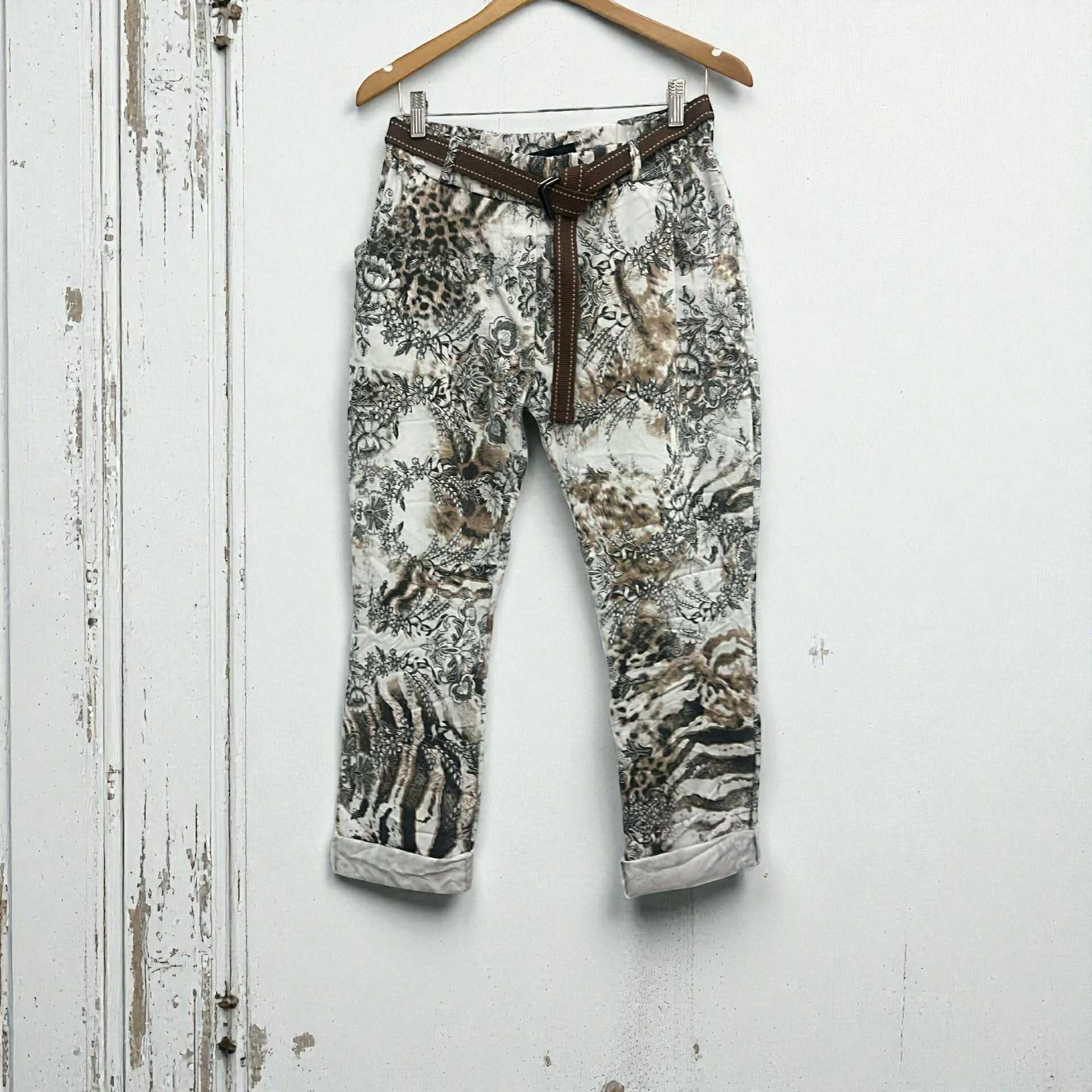 Designed with a comfortable pull-on waistband and a complimentary belt, they strike the perfect balance between relaxed and refined. The ankle-length cut makes them ideal for any occasion — pair with a tee and sneakers for an easy everyday look, or dress up with a silk blouse and wedges for elevated style.