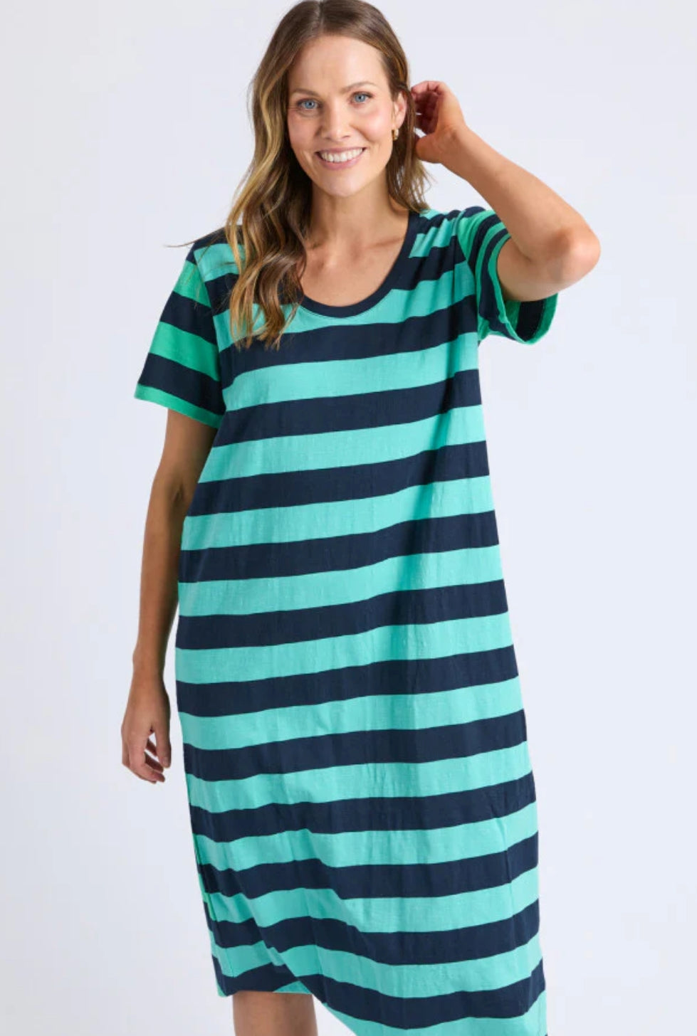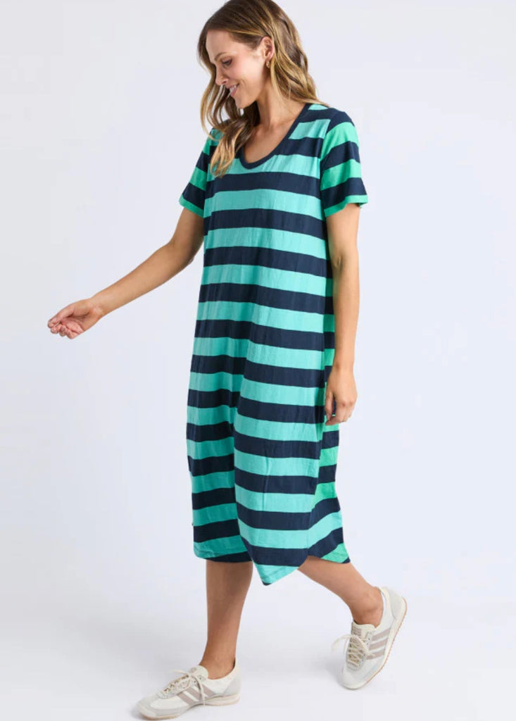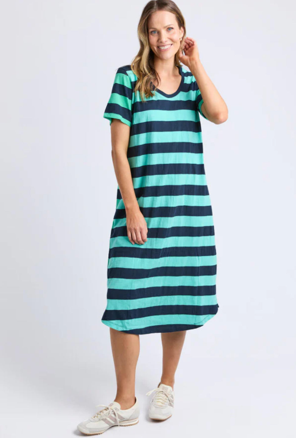 Effortless, versatile, and oh-so-comfortable — the Mercury Stripe Dress by Elm Lifestyle is your go-to for warm, sunny days. Crafted from soft, breathable fabric, this casual midi dress features classic horizontal stripes and a relaxed silhouette for easy everyday wear.