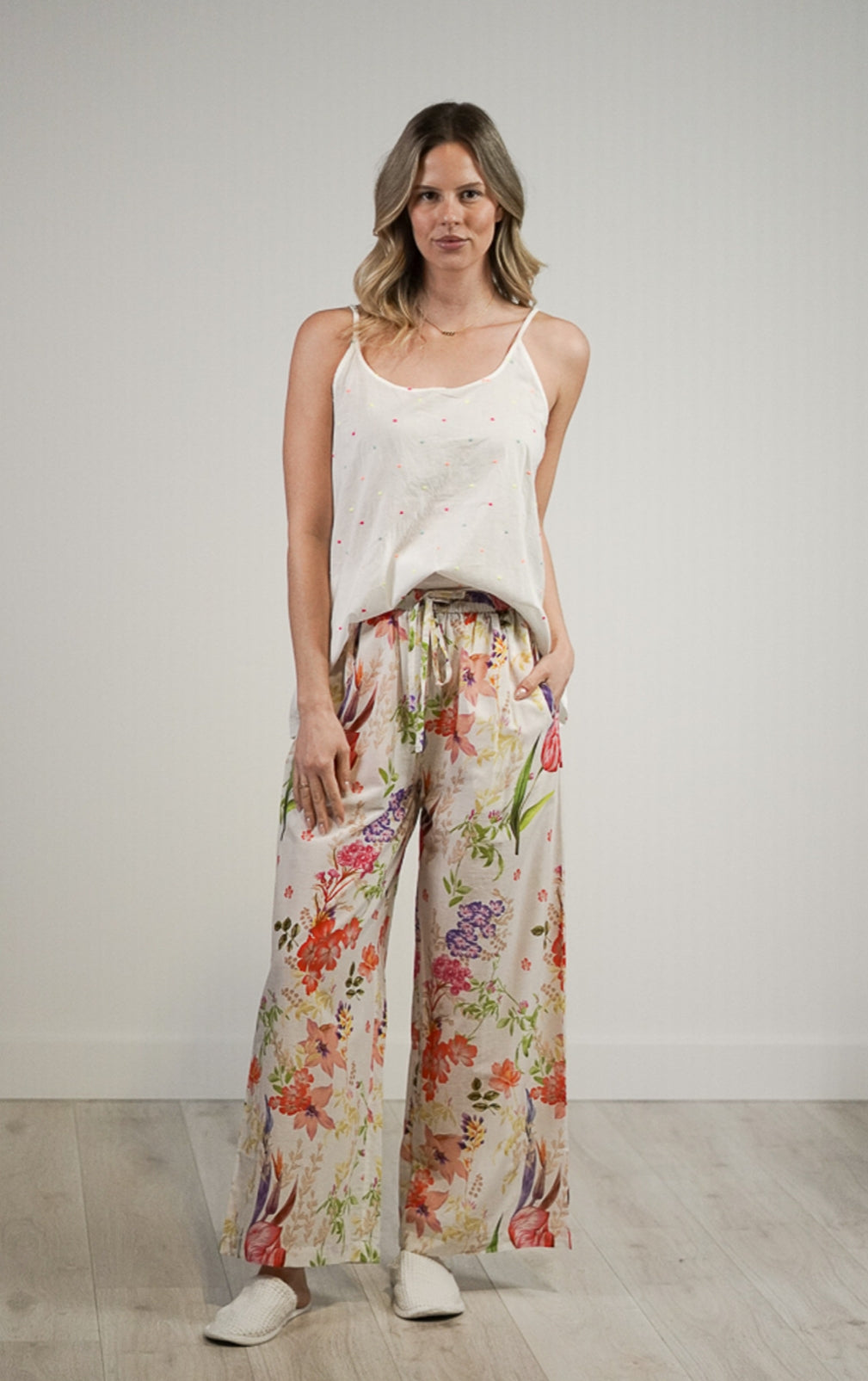 The playful tulip print adds a vibrant, tropical-inspired charm — perfect for brightening your lounge or holiday wardrobe. Whether you’re relaxing at home, enjoying resort days, or heading off on a getaway, these pants promise comfort and style. Pair them with a simple tee or singlet for an easy, laid-back look.