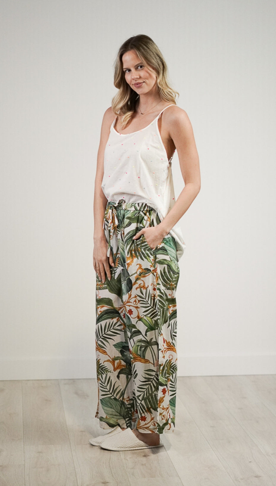 The Safari Lounge Pants are crafted from 100% lightweight cotton voile, offering a soft, breathable feel for all-day comfort. Designed with a relaxed fit and an elasticated drawstring waist, they drape beautifully while allowing effortless movement.