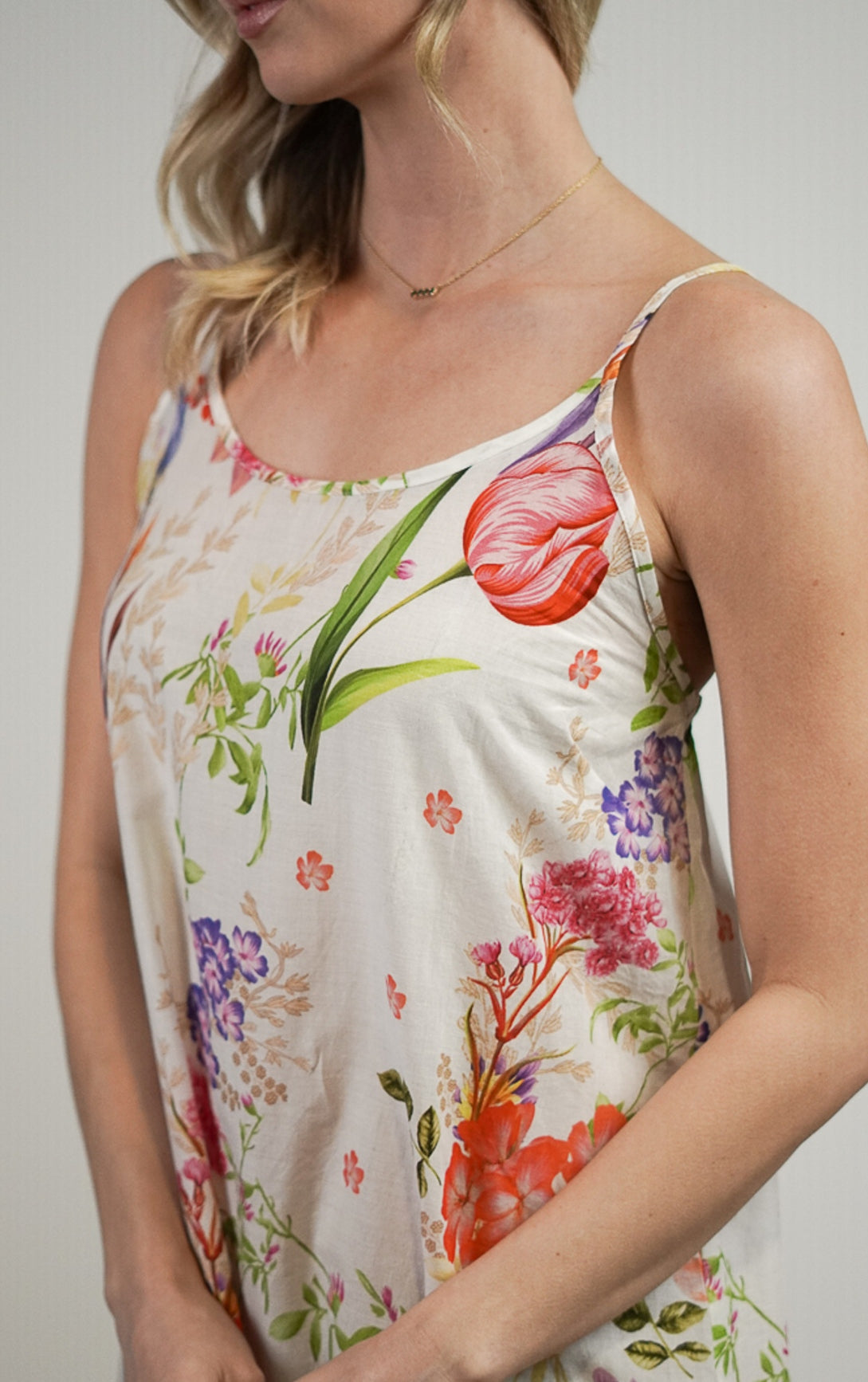 Unwind in effortless style with the Parrot Tulips Slip Dress, crafted from lightweight cotton voile for natural breathability and all-night comfort. Soft against the skin and easy to wear, this feminine nightdress is designed in a classic slip silhouette with slender straps and a relaxed drape that falls gracefully above the knee.