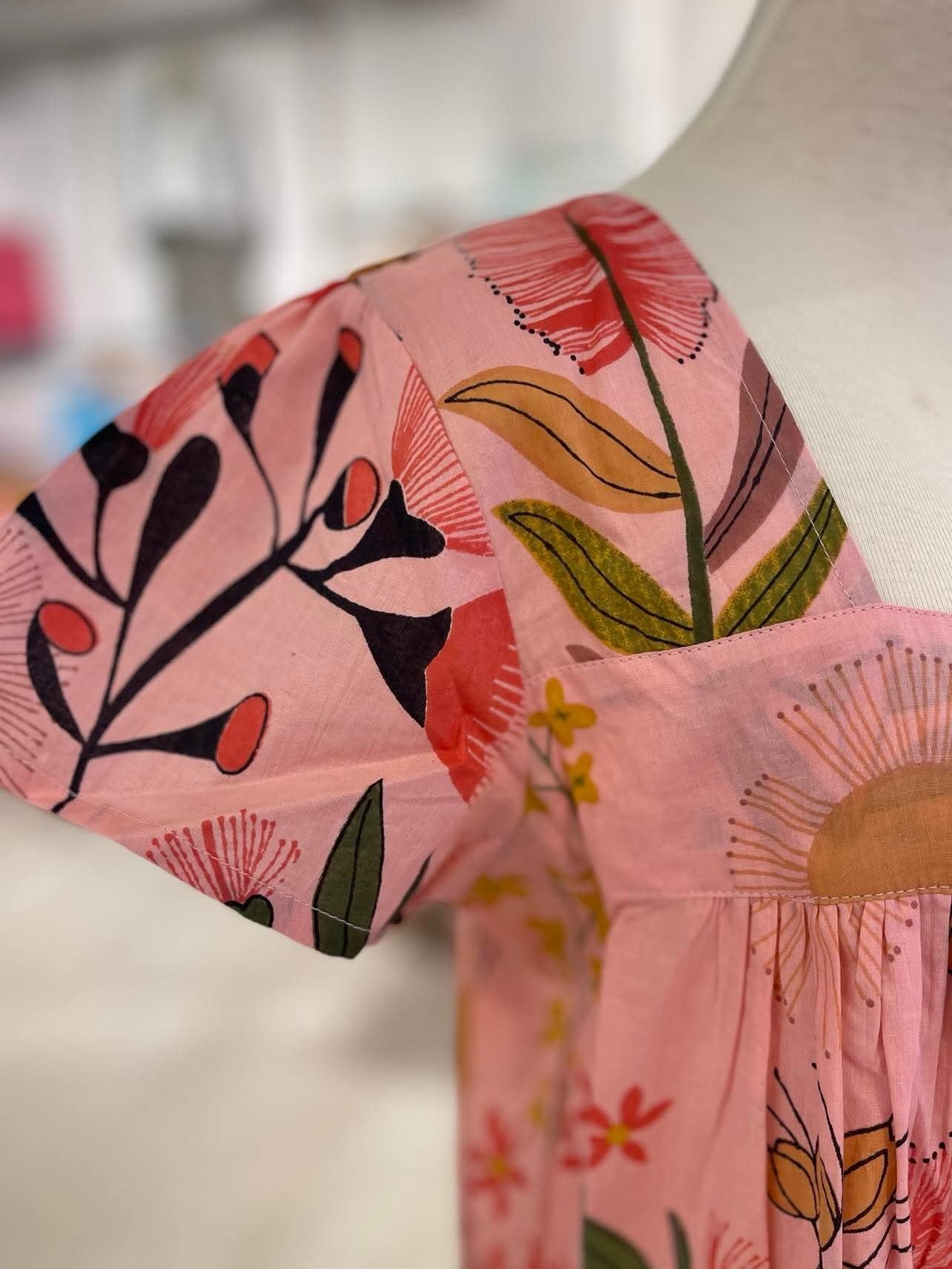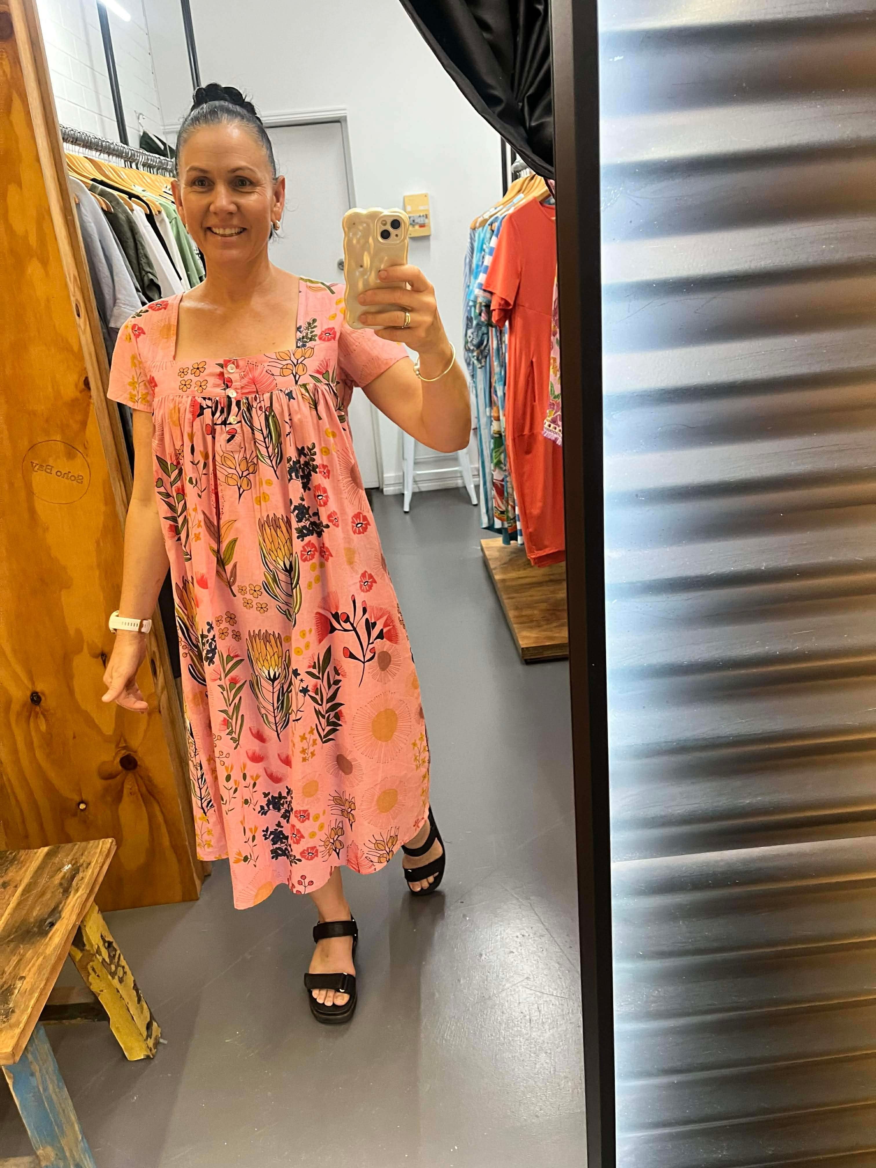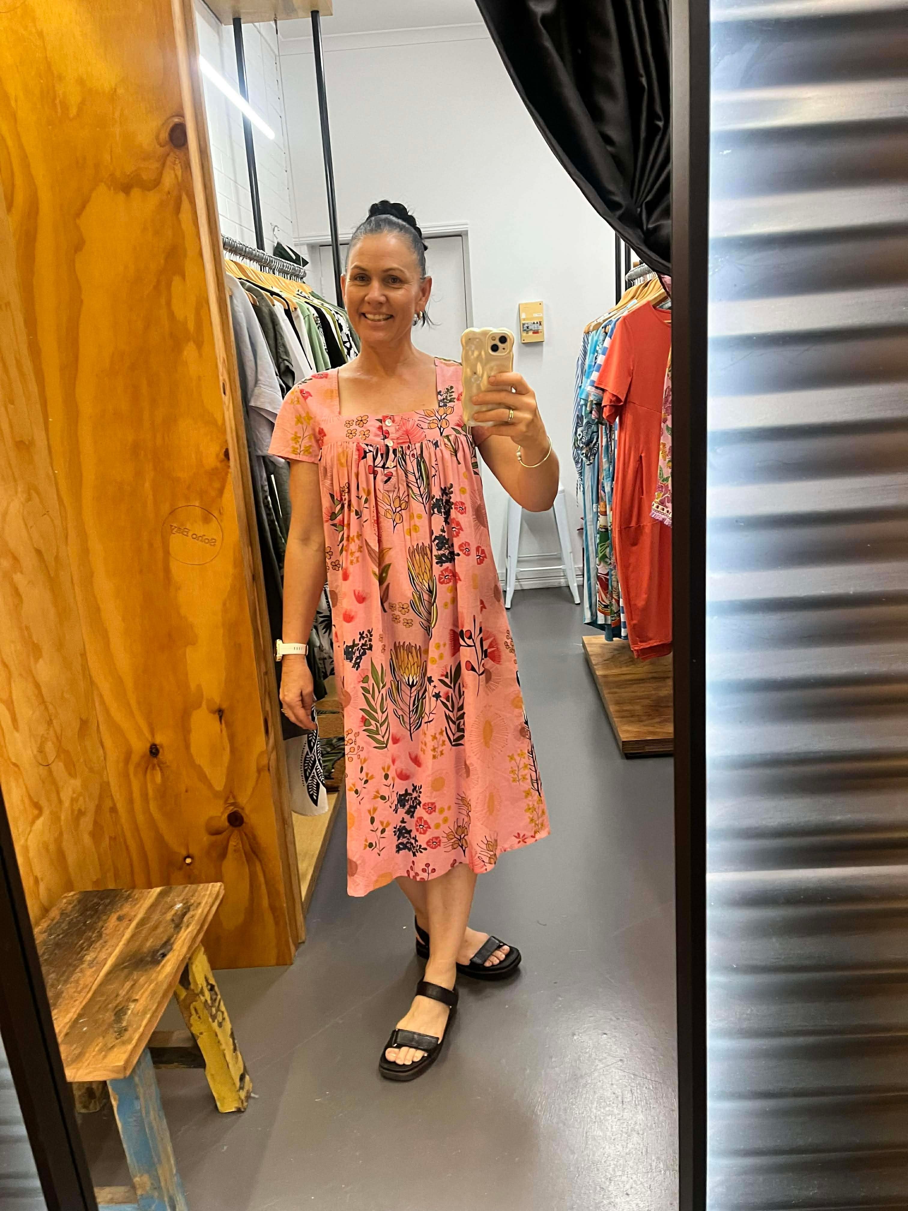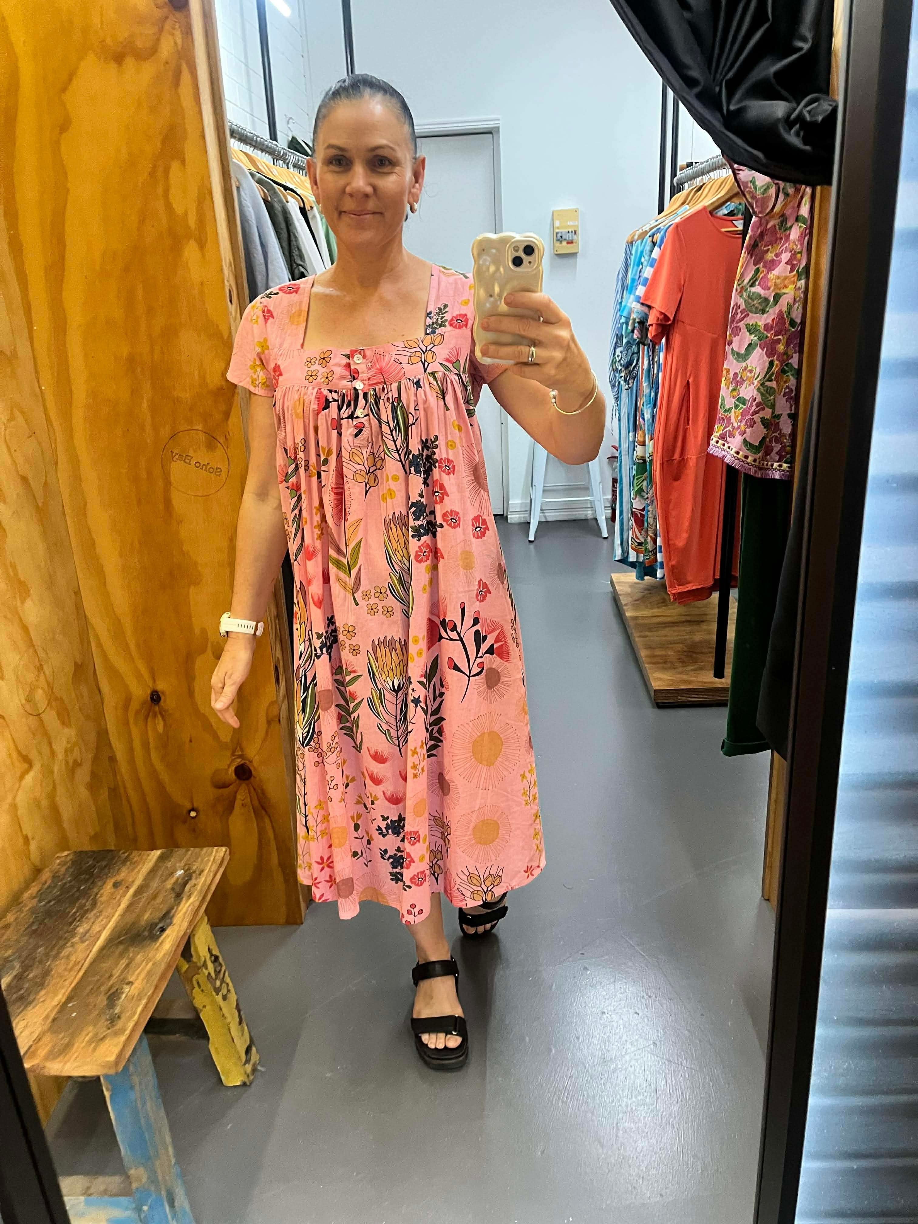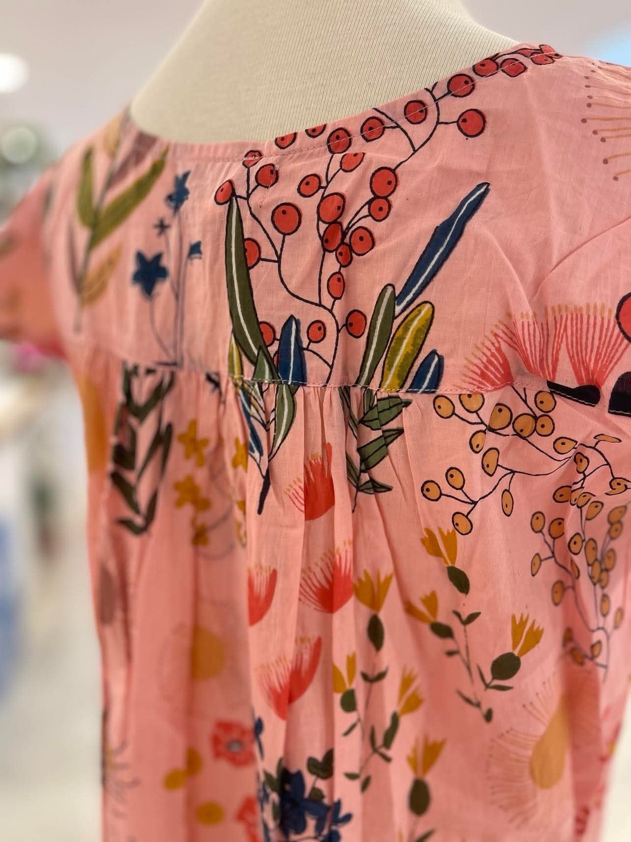 Drift into comfort and style with the beautiful Protea Nightie, crafted from 100% breathable Indian cotton. Featuring a gorgeous floral print of delicate protea flowers on a soft pink background, this nightie is effortlessly feminine and timeless.