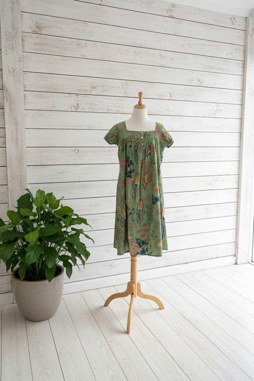 Designed with short sleeves and an airy, relaxed fit, it’s perfect for comfortable sleep and easy lounging all year round. The classic olive green base makes this nightie both flattering and practical, while the elegant floral design makes it a thoughtful gift for mums, grandmas, or anyone who appreciates comfortable, quality sleepwear.