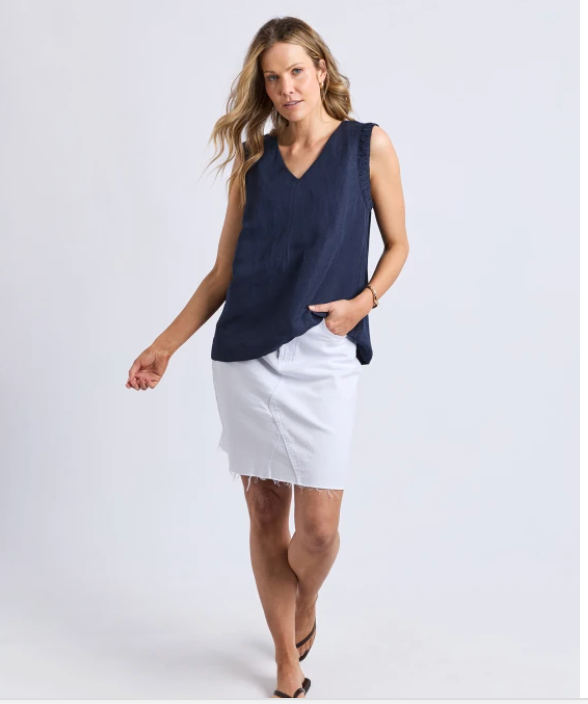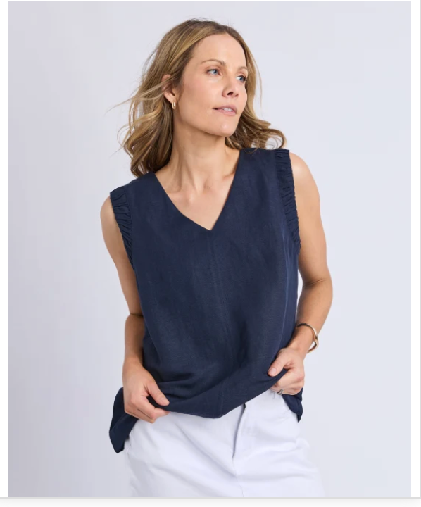 Discover effortless summer style with the Bermuda Top in Dark Sapphire by Foxwood. Crafted from breathable linen-blend fabric, this wardrobe essential features a flattering V-neckline and charming frill sleeve details that elevate any casual look. Perfect for warm weather adventures, it combines relaxed comfort with polished sophistication. Lightweight and breezy, it's your go-to piece for sunny days and getaways. Embrace easy, elegant dressing—add the Bermuda Top to your collection today.