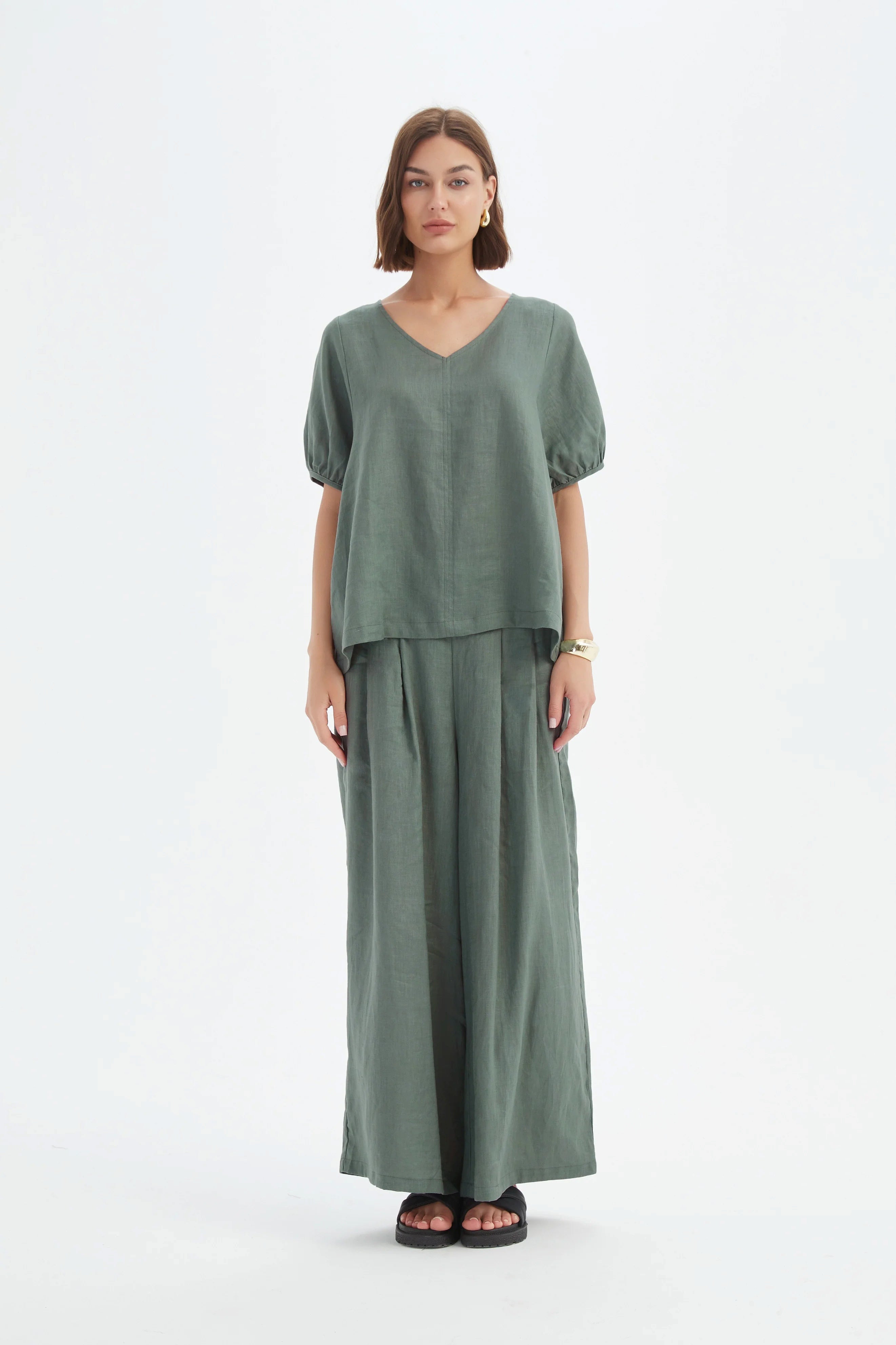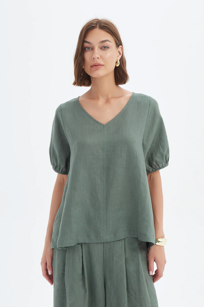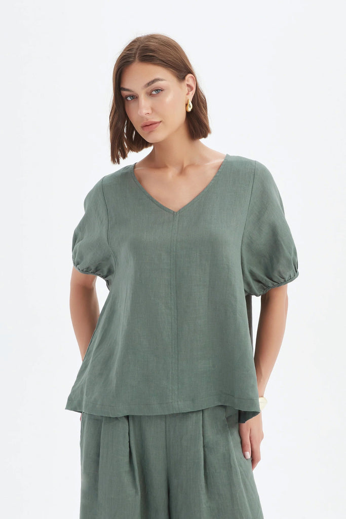 The Bishop Sleeve Tee brings effortless sophistication to everyday dressing. Crafted from 100% French Linen, this beautiful piece combines natural breathability with a refined finish — perfect for warmer days or layered comfort through the seasons.