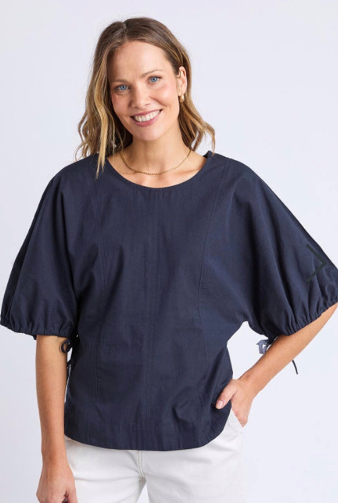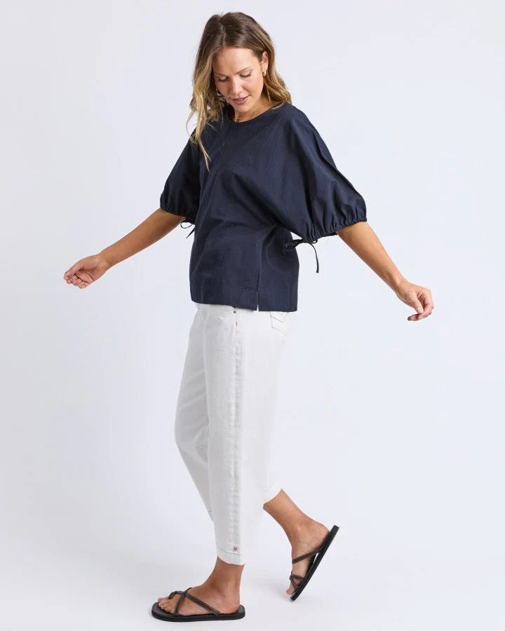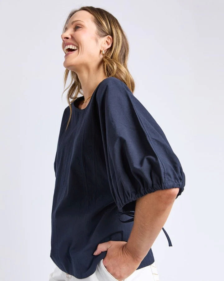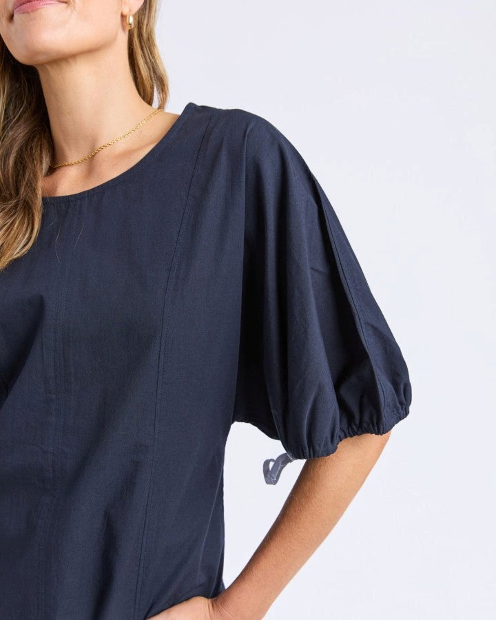 The Marie Top by Elm is the perfect go-to for effortless style from business to pleasure. Crafted from breathable cotton in a classic ink navy, this versatile top features a structured silhouette that still feels relaxed and easy to wear.
