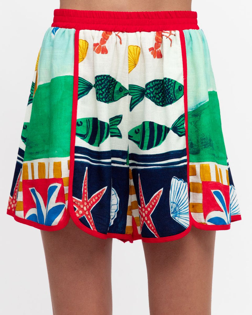 Step into effortless summer style with the Soleil Summer Set. This playful matching outfit features an oversized button-up shirt and elastic-waist shorts, both accented with striking red trims. Perfect for beach days, poolside relaxing, or casual holiday vibes, its lightweight rayon and linen blend keeps you cool and comfortable. Embrace the vibrant palm and seashell prints and make every day a sunny getaway — add the Soleil Summer Set to your wardrobe now!